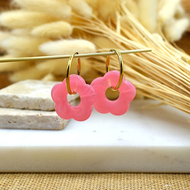 Créoles Fleurs Rose