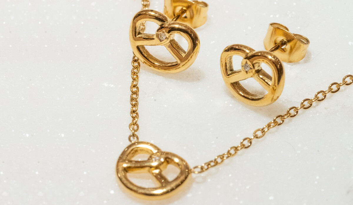 Des bagues et colliers en forme de bretzel, pour afficher son attachement avec style,
